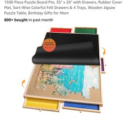 1500 Piece Puzzle Board Pro, 35" x 26" with Drawers, Rubber Cover Mat, Sort-Wise Colorful Felt Drawers & 4 Trays, Wooden Jigsaw Puzzle Table, Birthday$60Chino, CA