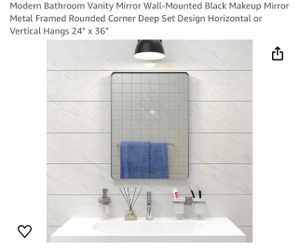 Modern Bathroom Vanity Mirror Wall-Mounted Black Makeup Mirror Metal Framed Rounded Corner Deep Set Design Horizontal or Vertical Hangs 24" x $55Chino, CA
