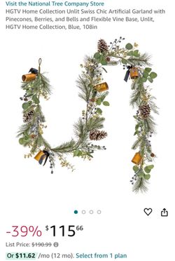 HGTV Home Collection Unlit Artificial Christmas Garland, Mixed Branch Tips, Flexible Vine Base, Unlit, 108 Inches$50Chino, CA