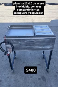 plancha 20x20 de acero inoxidable, con tres compartimientos, manguera y regulador$400Paramount, CA