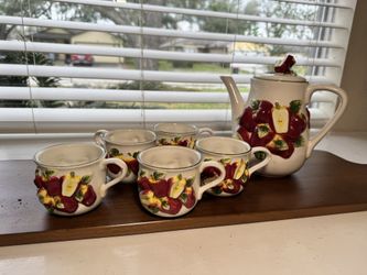 Vintage Ceramic 3D Apple Teapot Set with 6 cups With Rack $45Spring, TX