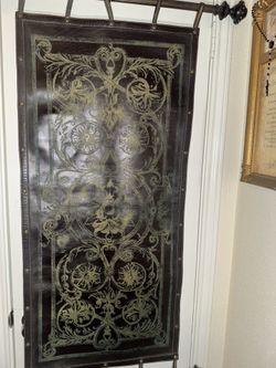 Bombay Company-Leather Studded Tapestry Wall Hanging, Ornate Wrought Iron Rods$50Spring, TX