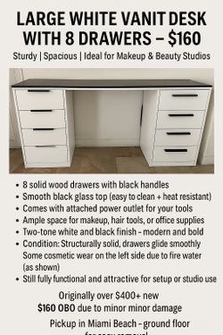 Large White Vanity Desk With 8 Drawers$160Miami Beach, FL