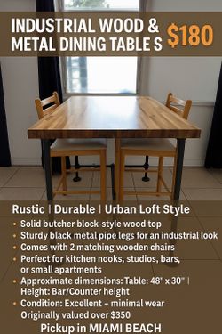🛠️ INDUSTRIAL WOOD & METAL DINING TABLE SET – $180 $180Miami Beach, FL