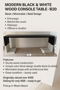 🖤 MODERN BLACK & WHITE CONSOLE TABLE – $120$120Miami Beach, FL