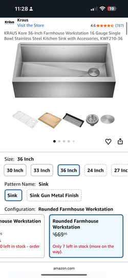 KRAUS Kore 36-Inch Farmhouse Workstation 16 Gauge Single Bowl Stainless Steel Kitchen Sink with Accessories$355Miami, FL