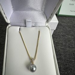 Na Hoku Pearl Factory very rare Akoya blue pink pearl set in 14k yellow gold with pave’ diamonds pendant w$175San Diego, CA