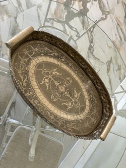 Vintage Castilian 6024 Large Solid Brass Metal Heavy Tray Ornate Embossed Handle$350Ocean Ridge, FL