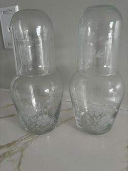 Royal Doulton ? Tumble Up Etched Flower Bedside Water Carafe & Tumbler VTG2 Pieces $30Ocean Ridge, FL