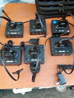 Leitner wireless single-ear headsets and their charging bases. $100Bellflower, CA