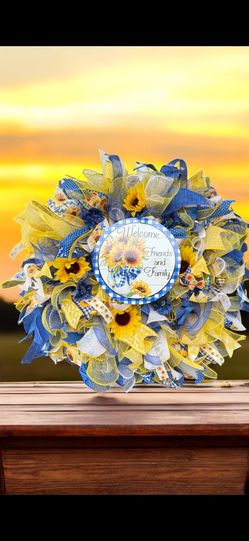 Blue and Yellow Sunflower Wreath $85Sanford, NC