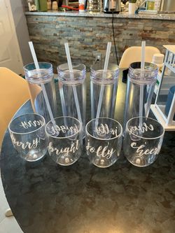 Four Tall Tumblers With Lids Plus Fun Holiday Wine Glasses$20Mckinney, TX