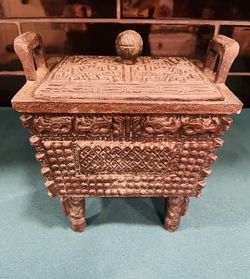 Vintage stunning mid century bronze metal Fang Ding James Mont style vessel ice bucket$185West Palm Beach, FL