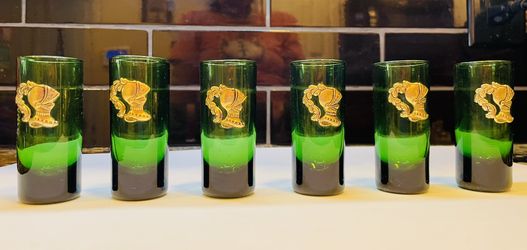 Beautiful Set Of 6 Emerald Green Cordial/shot Glasses With Knights Helmets$65West Palm Beach, FL