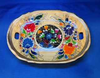 Vintage Hand Painted Mexican Folk Art Oval Wooden Tray $28West Palm Beach, FL