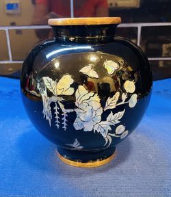 Pretty Brass And Mother Of Pearl Black Lacquered Vase $45West Palm Beach, FL