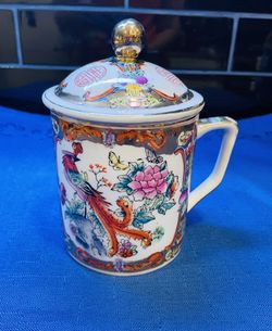 Beautiful Hand Painted Asian Lidded Mug With Floral/pheonix $25West Palm Beach, FL