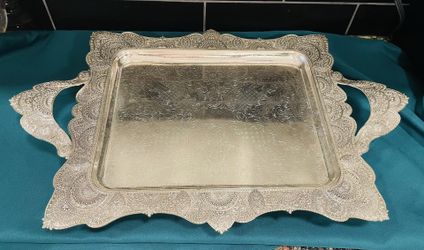 Vintage gorgeous silver plated ornate filigree tray with handles$190West Palm Beach, FL
