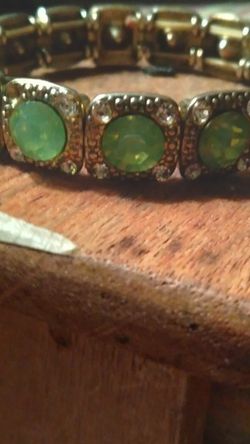 Vintage Chartruese Stone d Fitted Bracelet accented W Mini Rhinestones$7Norfolk, VA
