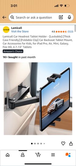 Lamicall Car Headrest Tablet Holder - [Lockable] [Thick Case Friendly] [Foldable Clip] Car Backseat Tablet Mount, Car Accessories for Kids, for iPad P$20Irwindale, CA