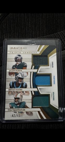 Jalen Hurts/Bryce Young/Tua Tagovailoa 2025 Triple Jerseys Immaculate 47/49$250San Jose, CA