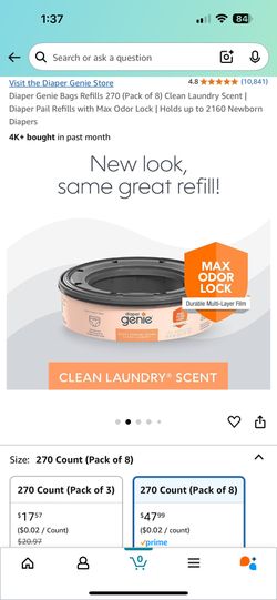 Diaper Genie Bags Refills 270 (Pack of 8) Clean Laundry Scent $35Cleveland, OH