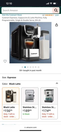 Cuisinart Espresso, Cappuccino & Latte Machine, Fully Programmable, Single & Double Serve, EM-25$85Chicago, IL