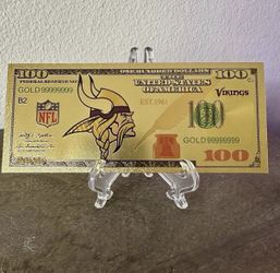 24k Gold Foil Plated Minnesota Vikings Football Team Banknote $10Orlando, FL