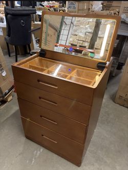 Walnut Wood Vanity Desk with Flip Top Mirror, 4 Drawers & Stool, Mid-Century Modern Makeup Table with Wheels, Retro Dressing Table Set$175La Habra Heights, CA