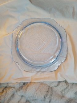 Federal Glass Light Blue Depression Dinner/Chop Plate "Madrid" Style 10.25 inch Serving Dish Vintage Kitchen