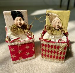Pair Of Mark Roberts Jester Fairy Jack In The Box Christmas Ornaments 2”x2” Box$99Glenwood, MD