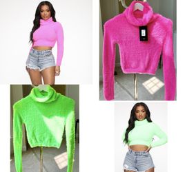 FASHIONOVA Being Cozy Fuzzy Sweater, Neon Lime & Neon Pink, Small$30Glenwood, MD