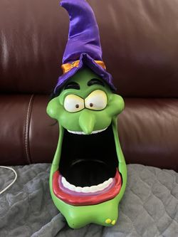 Vtg 2002 Big Mouth Candy Bowl Talking Witch Halloween Haunted House Decor Gemmy$10Riverside, CA
