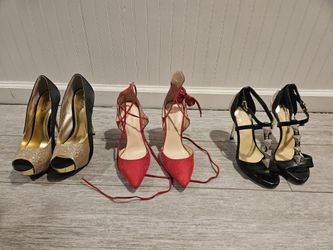 Holiday Heels 8.5 - 9 Red Black Gold Sparkle Rhinestone Gianni Bini Charlotte Russe$35Parma Heights, OH
