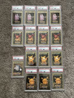 Pokemon Card Gengar Pikachu Poliwhirl Wigglytuff Raichu Meowth Psyduck Flareon Hasbro Toy Wishes Magazine Gold Hand Cut Sheet Panel Grading CGC PSA $2Anaheim, CA