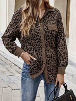 EMERY ROSE Women's Leopard Print Front Button Casual Long Sleeve Regular Jacket$20Thomasville, NC