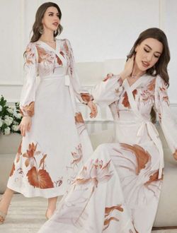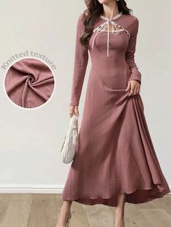 Modelyn Ladies Spring Summer Fall Spliced Ruffle Front Tie Long Sleeve Elegant Long Dress$35Thomasville, NC