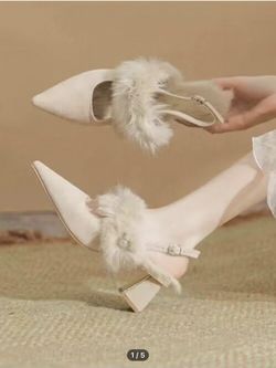 Women'S Furry High Heel Shoes With Thick Heels, Autumn/Winter Fashionable Outdoors Shoes With Toe Cap, Black$25Thomasville, NC