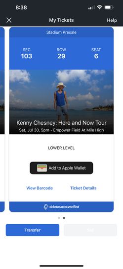 Kenny Chesney Tickets Section103$500Aurora, CO