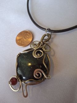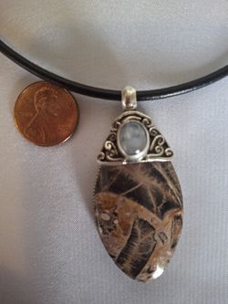 Artisanal Habdmade Gemstone Necklace Leather Cord, .950 Silver Detail$60Long Beach, CA