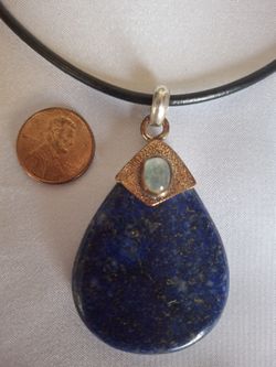 Artisanal Pendant Necklace Lapis Lazuli Leather Cord Handmade In Ecuador New$50Long Beach, CA