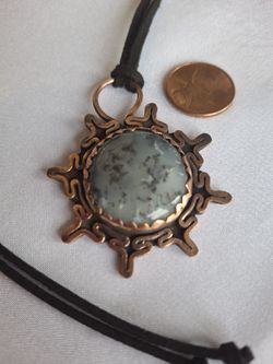 Artisanal Gemstone Pendant Necklace Leather Cord Copper Metal Handmade In Ecuador $50Long Beach, CA