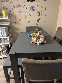 Wooden grey cable with four chairs and the bench$300Sanford, FL