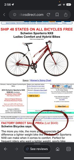 Schwinn Sporterra NX8 Ladies Bike$75Bakersfield, CA