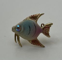Vintage Angel Fish Pastel Colored Brooch Pin 3/4” Rhinestone Eye Gold Tone Accents$10Loves Park, IL
