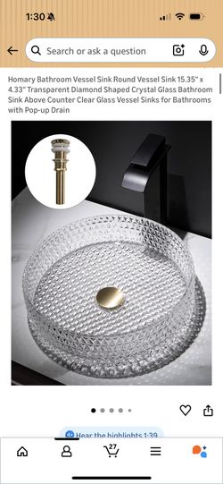 Homary Bathroom Vessel Sink Round Vessel Sink 15.35" x 4.33" Transparent Diamond Shaped Crystal Glass Bathroom Sink Above Counter Clear Glass Vessel S$75Fort Lauderdale, FL