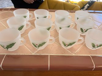 Vintage federal glass frosted holly punch mugs$80Arlington, TX