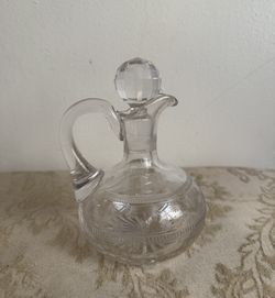 Antique Hand Blown Clear Glass Cruet Etch Cut Fleur de Lis Design Elegant - Feel Free to Ask$25Los Angeles, CA