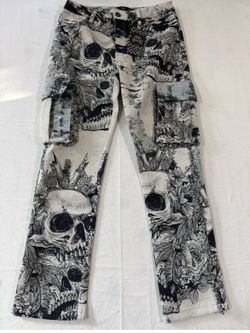 REBEL VENGEANCE Cargo Pants Tapestry Fringe Skull Skeleton Goth Mens 30x32$50Oxnard, CA