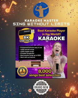 Karaoke USB Drive with 8,000 songs All times Real and High Quality ENGLISH & SPANISH KARAOKE songs.$69Boynton Beach, FL